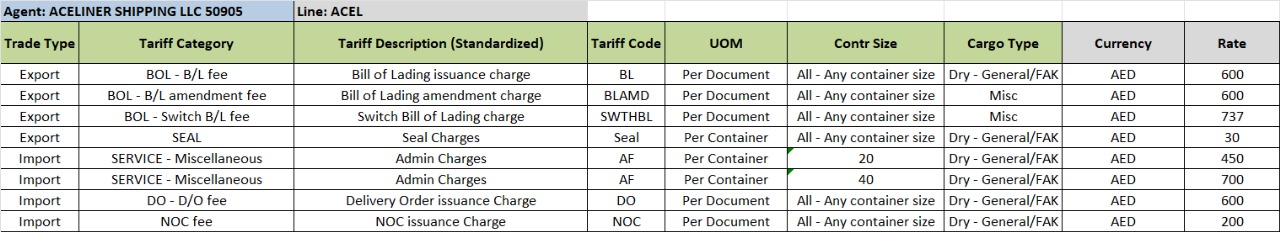 | Days after freetime expiration | 20′ DRY/NOR | 40’/45′ DRY/HC/NOR | 20′ REEF | 40′ REEF | 20’FLAT / OPEN TOP | 40’FLAT / OPEN TOP | 20′ IMO / 40′ IMO |